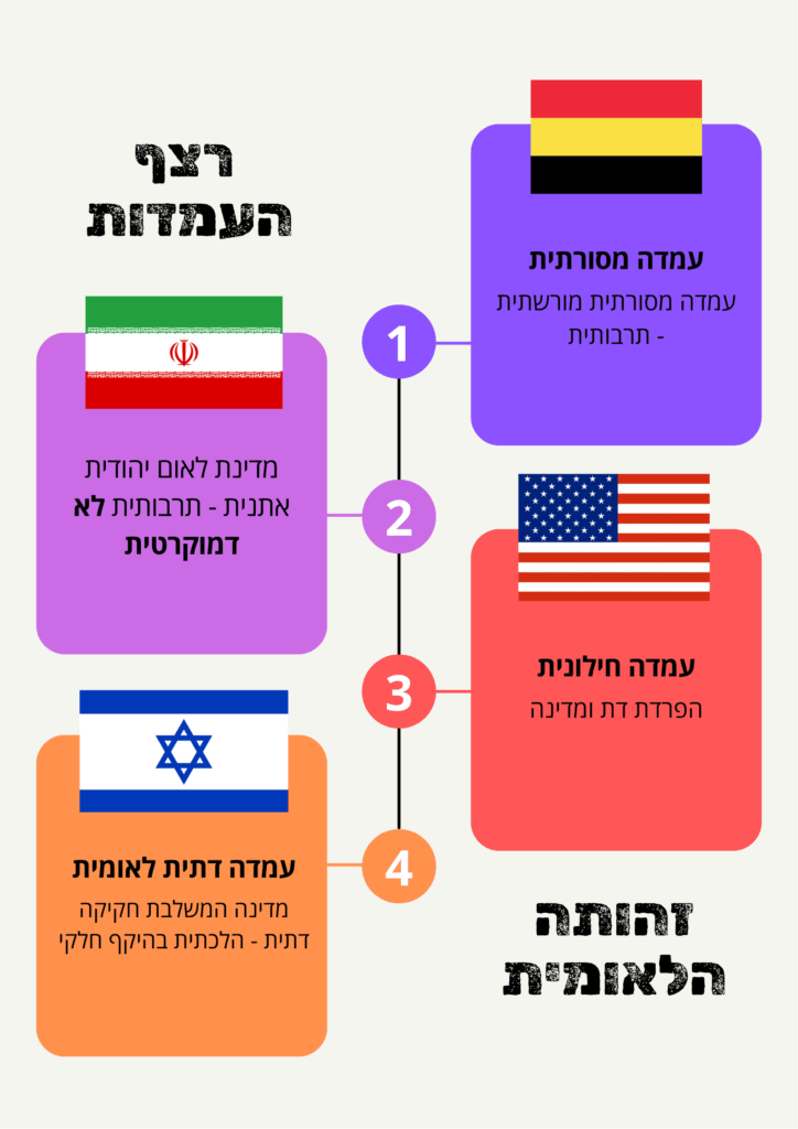 הנושא שלפנינו עוסק ברצף העמדות – או החלומות – לגבי זהותה הלאומית הרצויה של מדינת ישראל. אין הכוונה בהכרח לתיאור של המצב הקיים כיום, אלא להצגת מגוון השקפות שונות באוכלוסייה, שכל אחת מהן משקפת חזון אחר לגבי אופייה הרצוי של המדינה בעתיד.